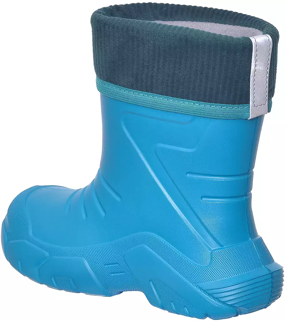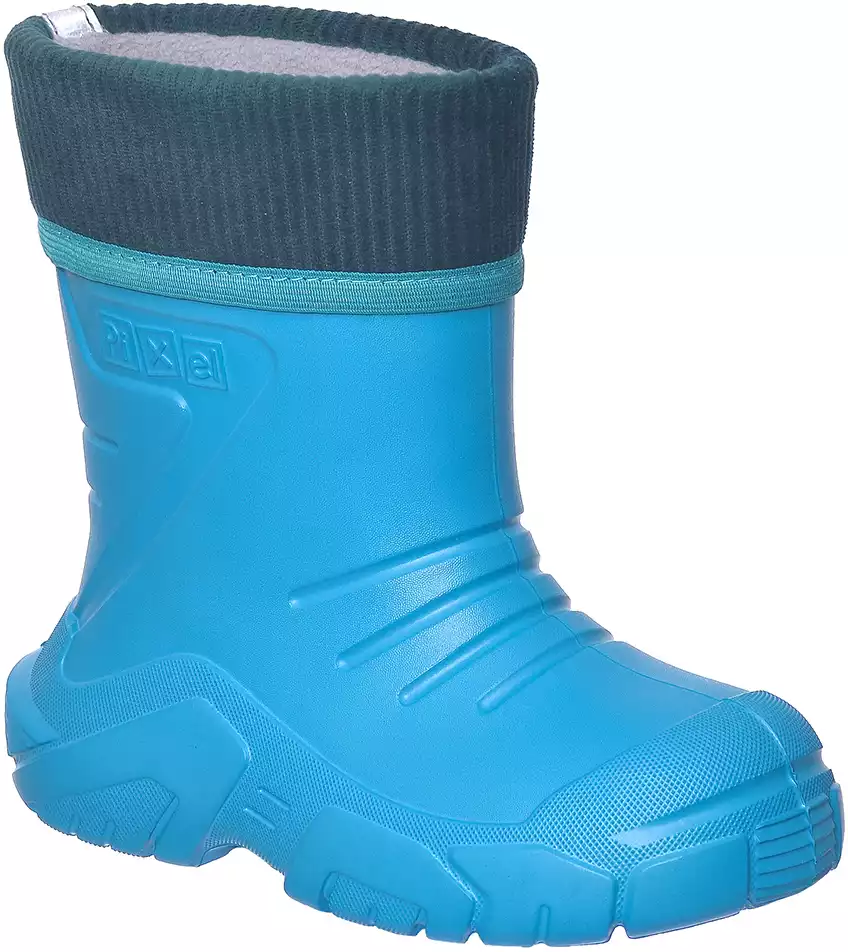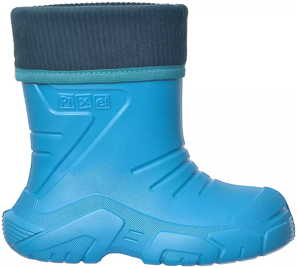 Непромокаемые сапоги из ЭВА Pixel со флисовым сьемным чулком. На отвороте чулка пришита светоотражающая лента. Стелька дублирована поролоном достаточной толщины, чтобы амортизировать ударную волну шага. Снаружи поролон закрыт нетканым полотном, которое отвечает за износостойкость. Комбинированный протектор на подошве хорошо сцепляется с поверхностью, боковые ступеньки не собирают грязь в подошве.