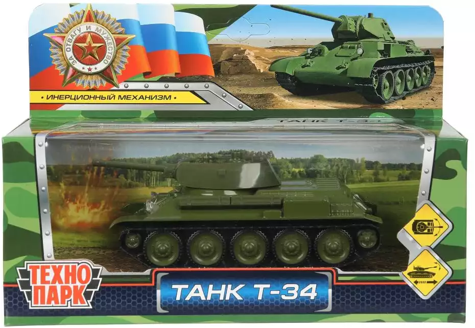Модель машины УРАЛВАГОНЗАВОД Т-90 ТАНК т-34 12 см инерция T34-12-GN ТЕХНОПАРК