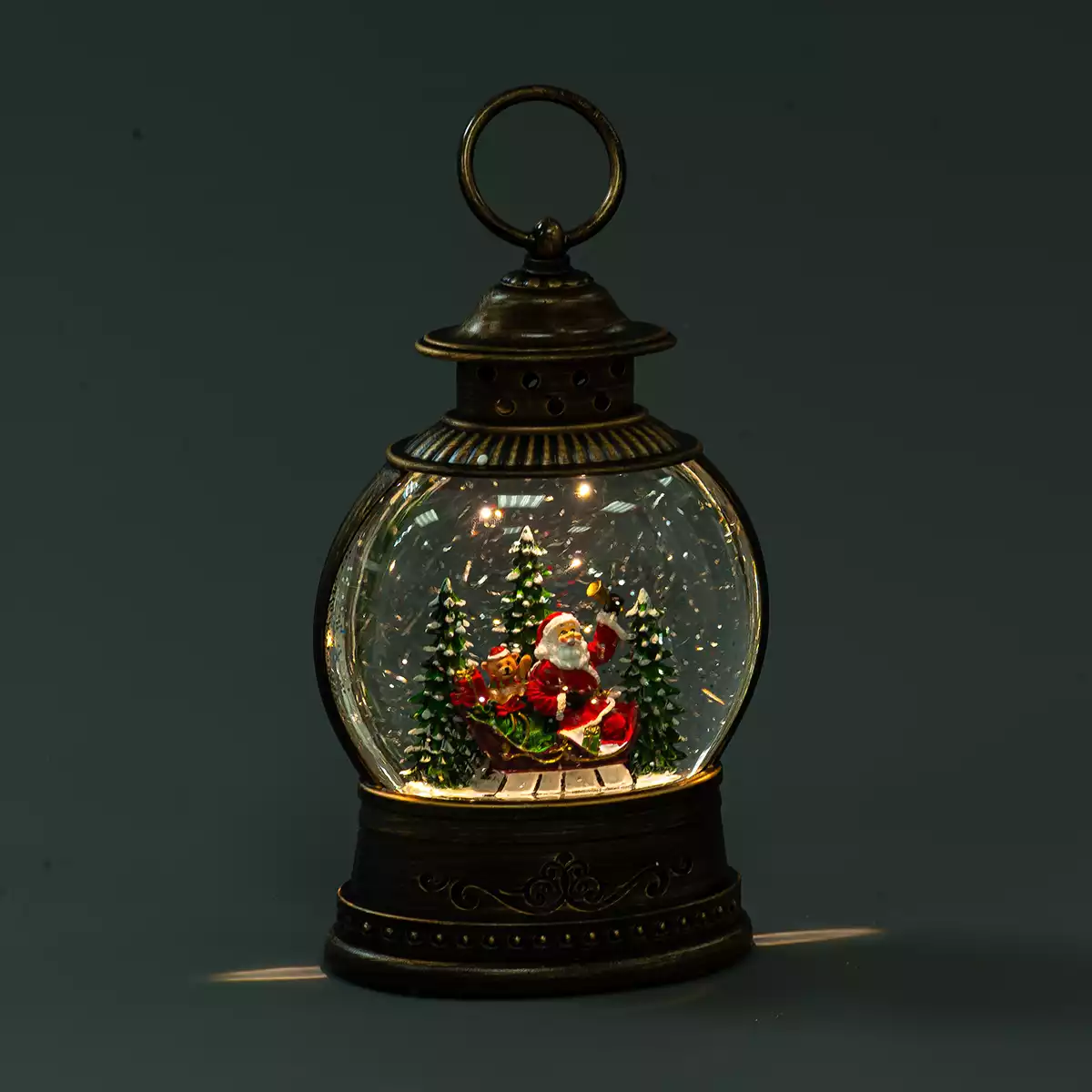 - новогоднее украшение фонарик 21 см usb/батарейки дед мороз в санях (свет, звук)058d-6829d