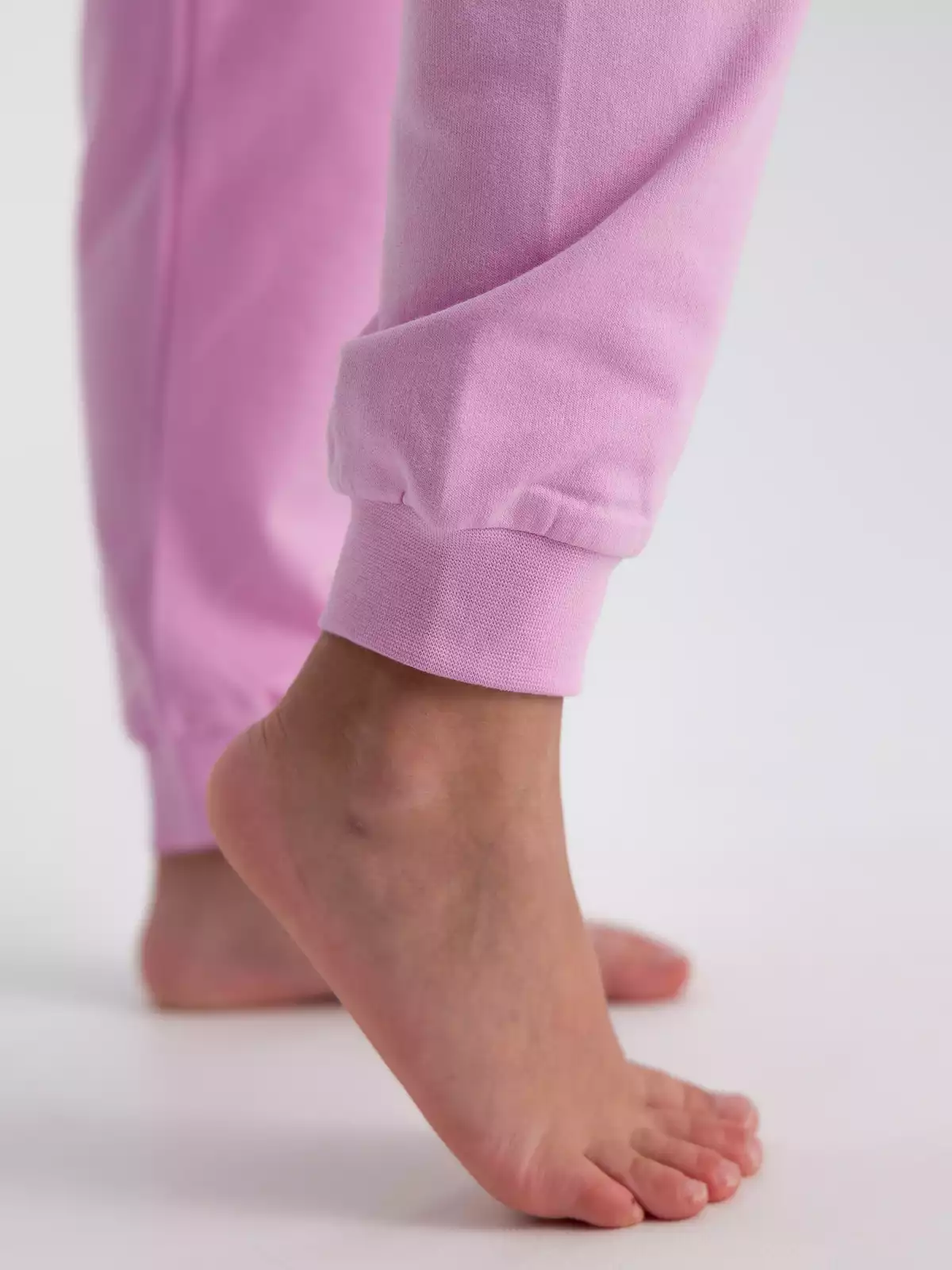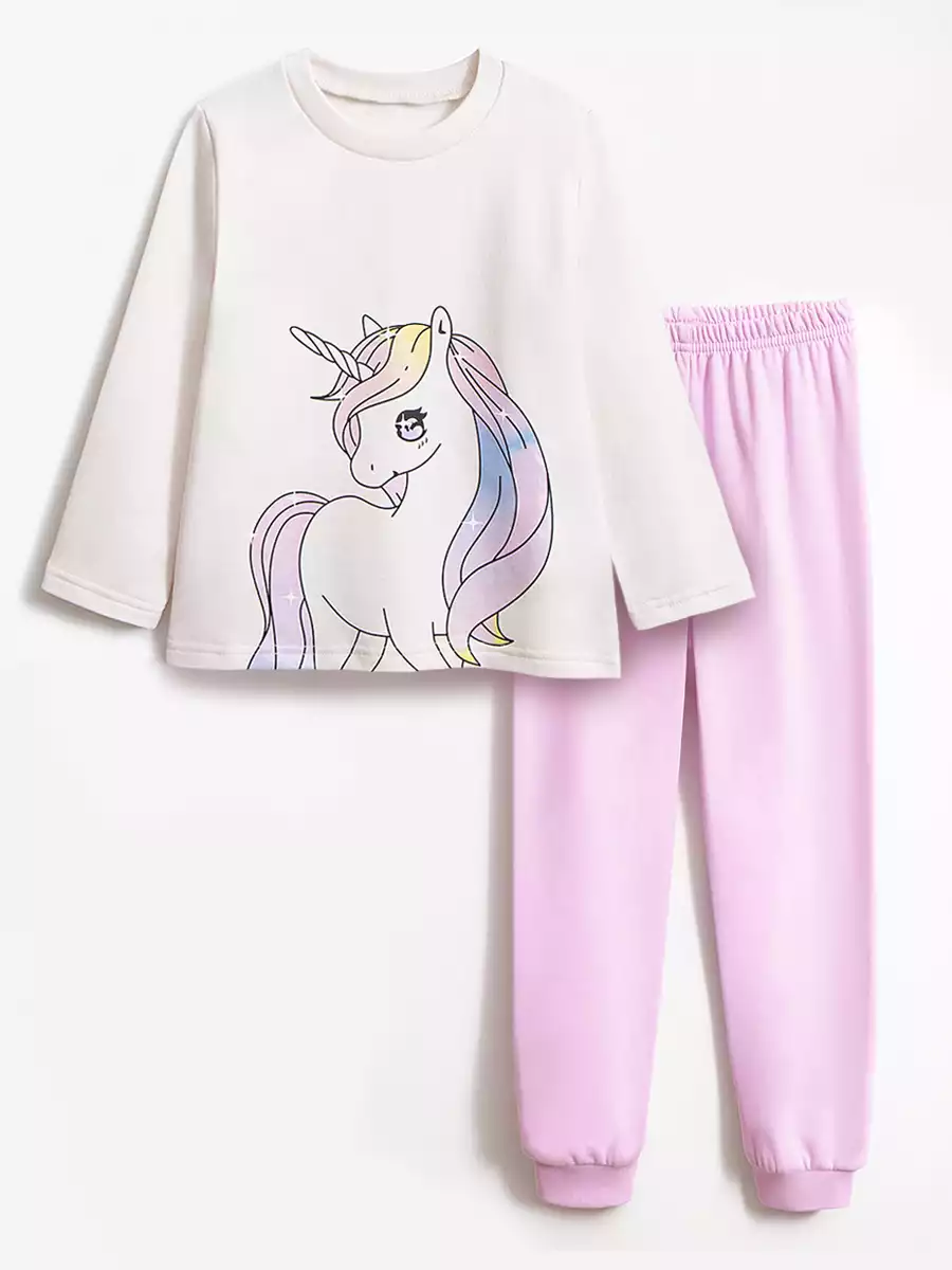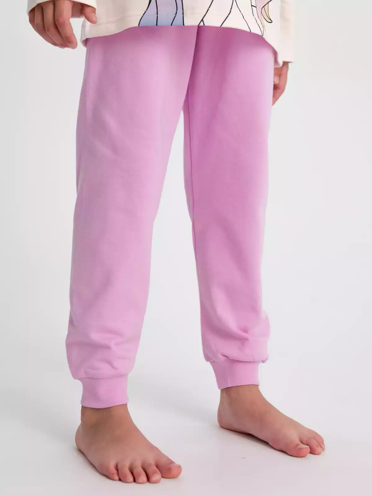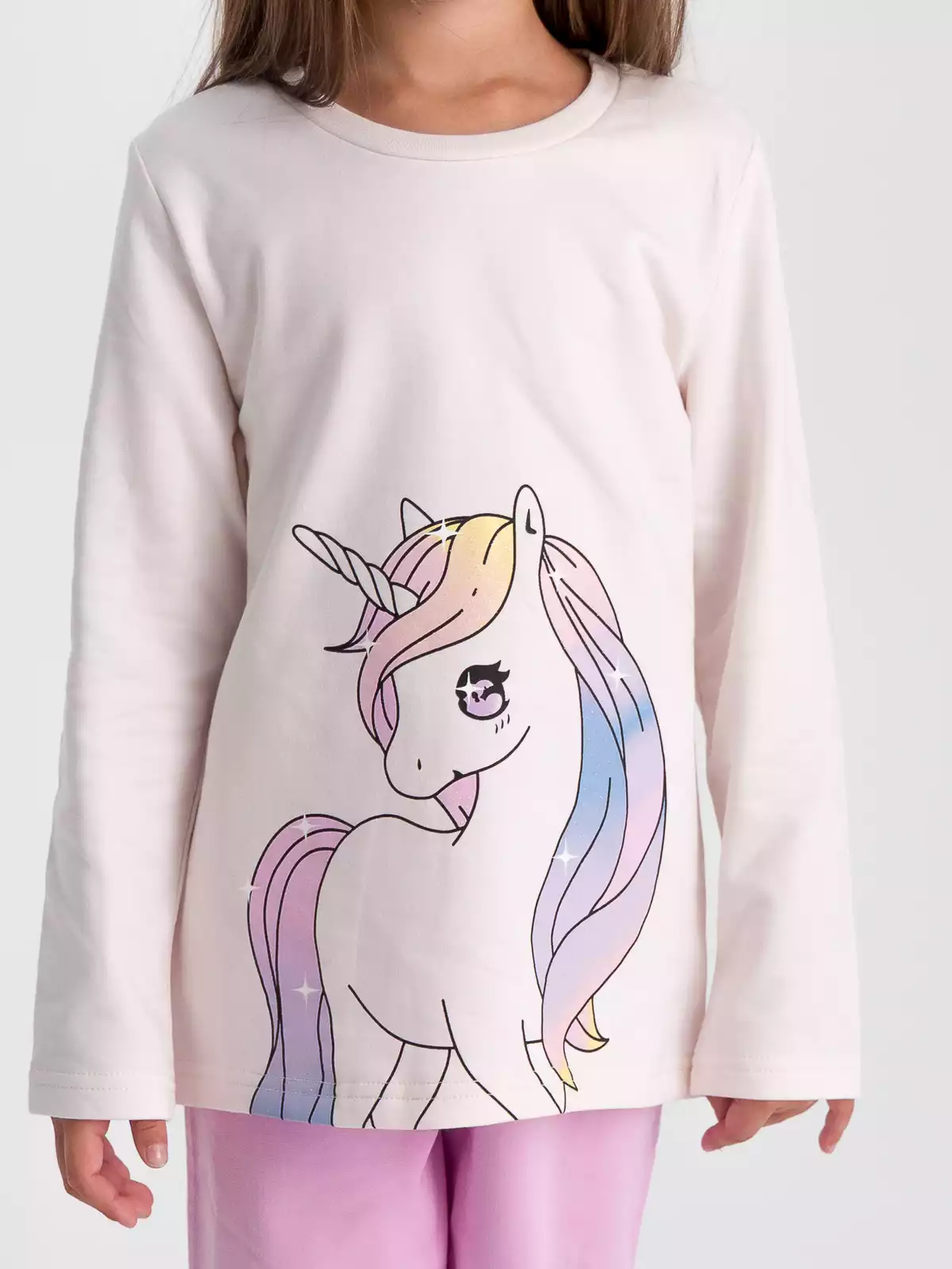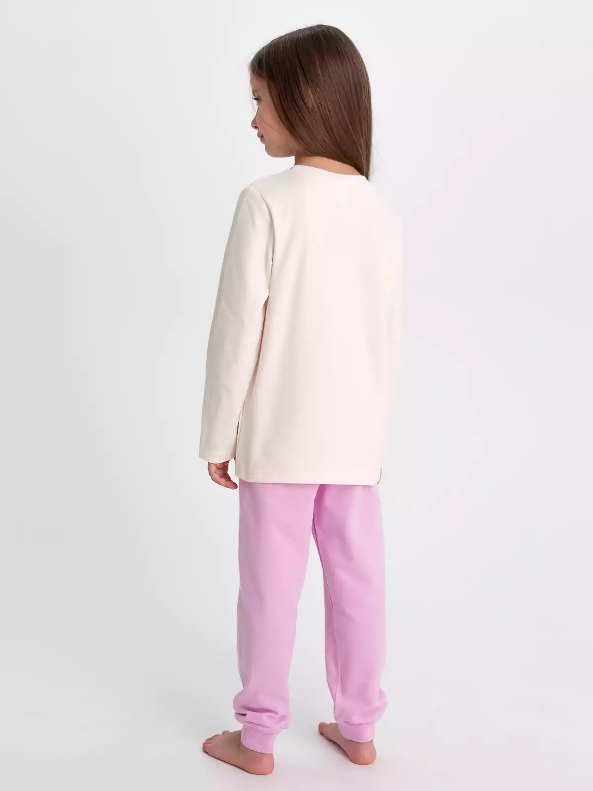 Пижама детская с длинными рукавами выполнена из натурального хлопка, она необычайно мягкая, легкая и не сковывает движения. Брюки на резинке по талии. Перед фуфайки декорирован принтом. В такой стильной пижаме обеспечен комфортный и крепкий сон!