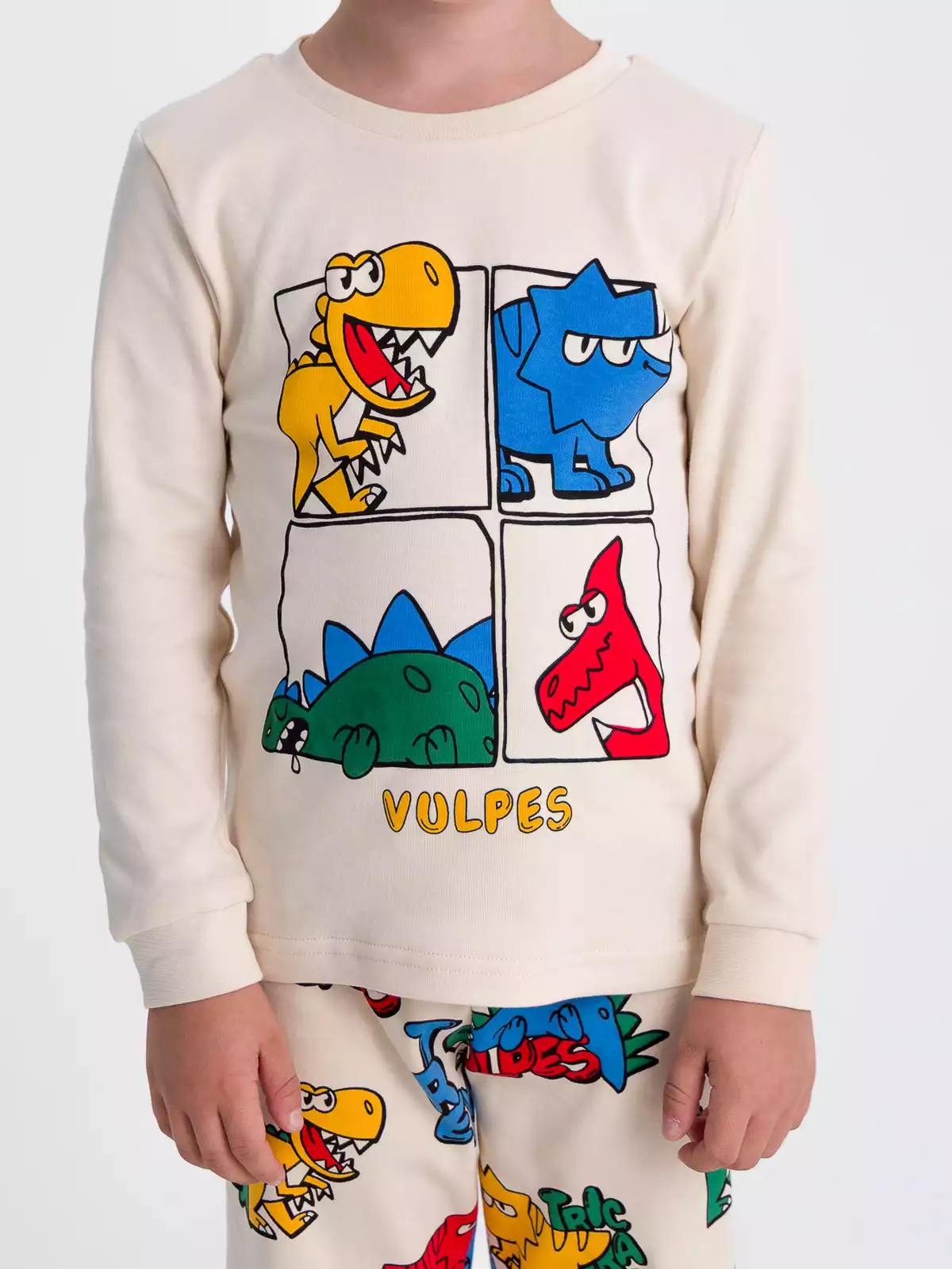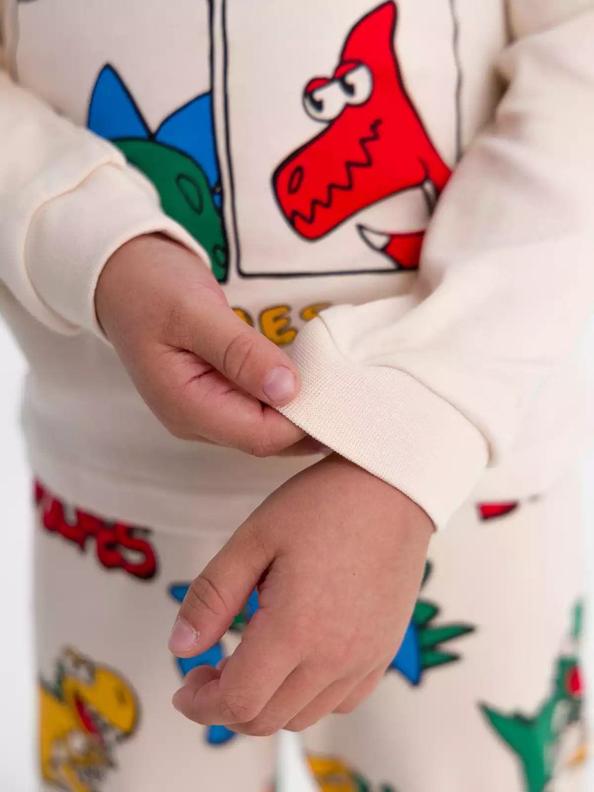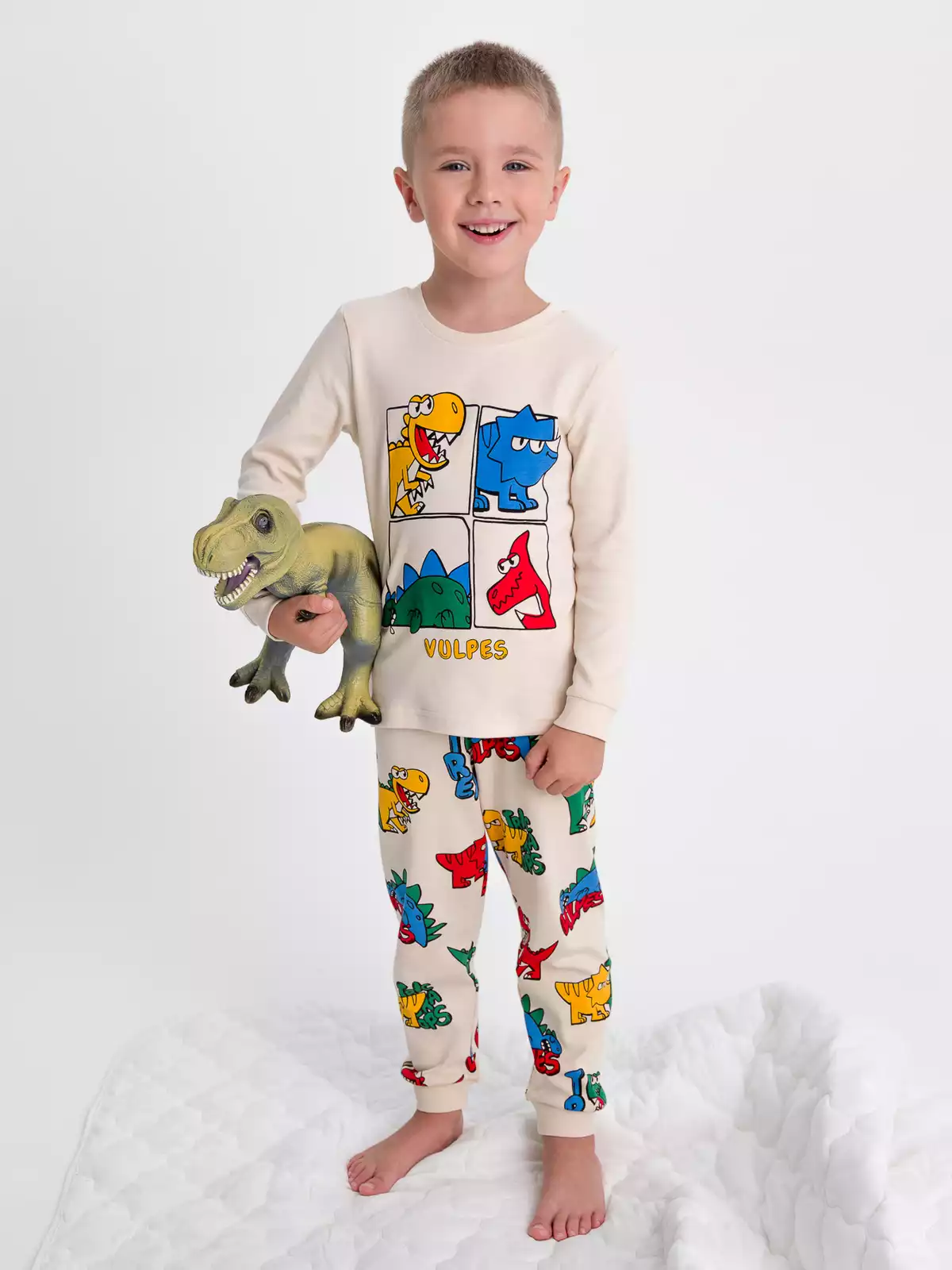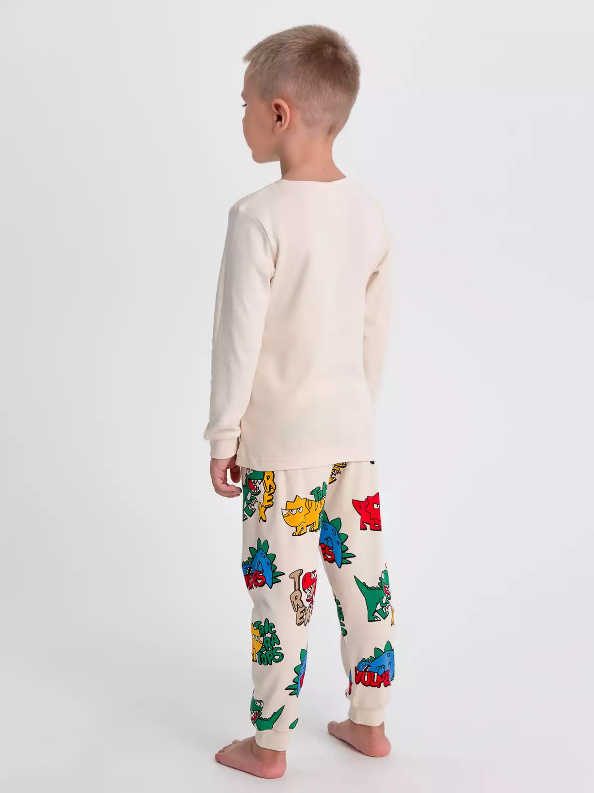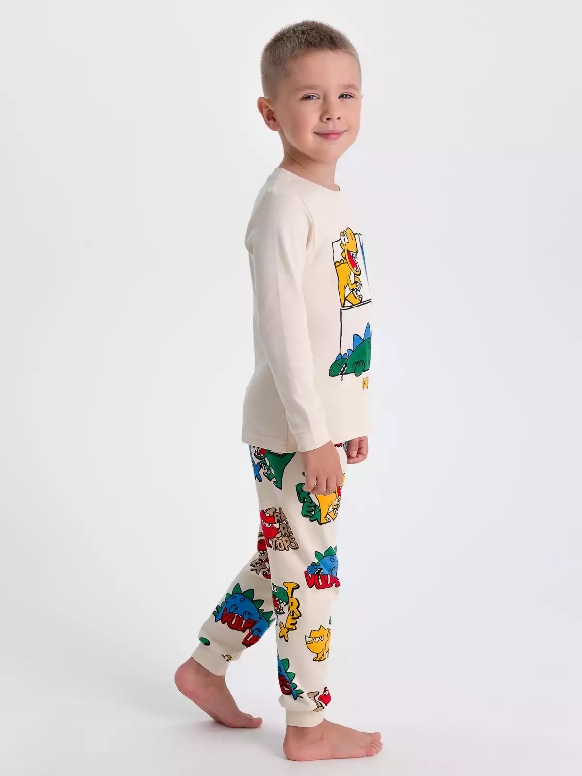 Пижама детская с длинными рукавами выполнена из натурального хлопка, она необычайно мягкая, легкая и не сковывает движения. Брюки на резинке по талии, декорированы принтом. На передней полочке имеется принт. В такой стильной пижаме обеспечен комфортный и крепкий сон!