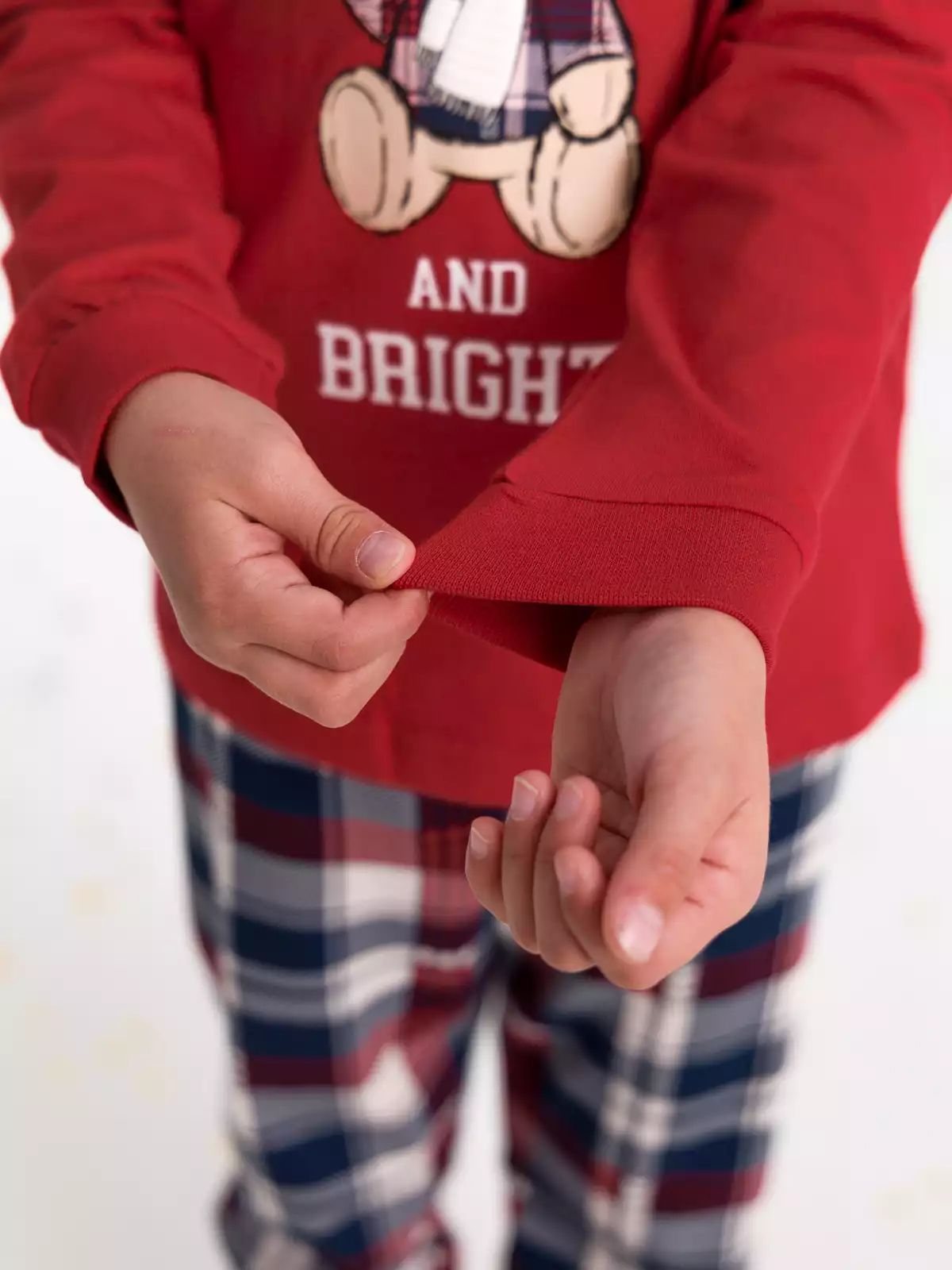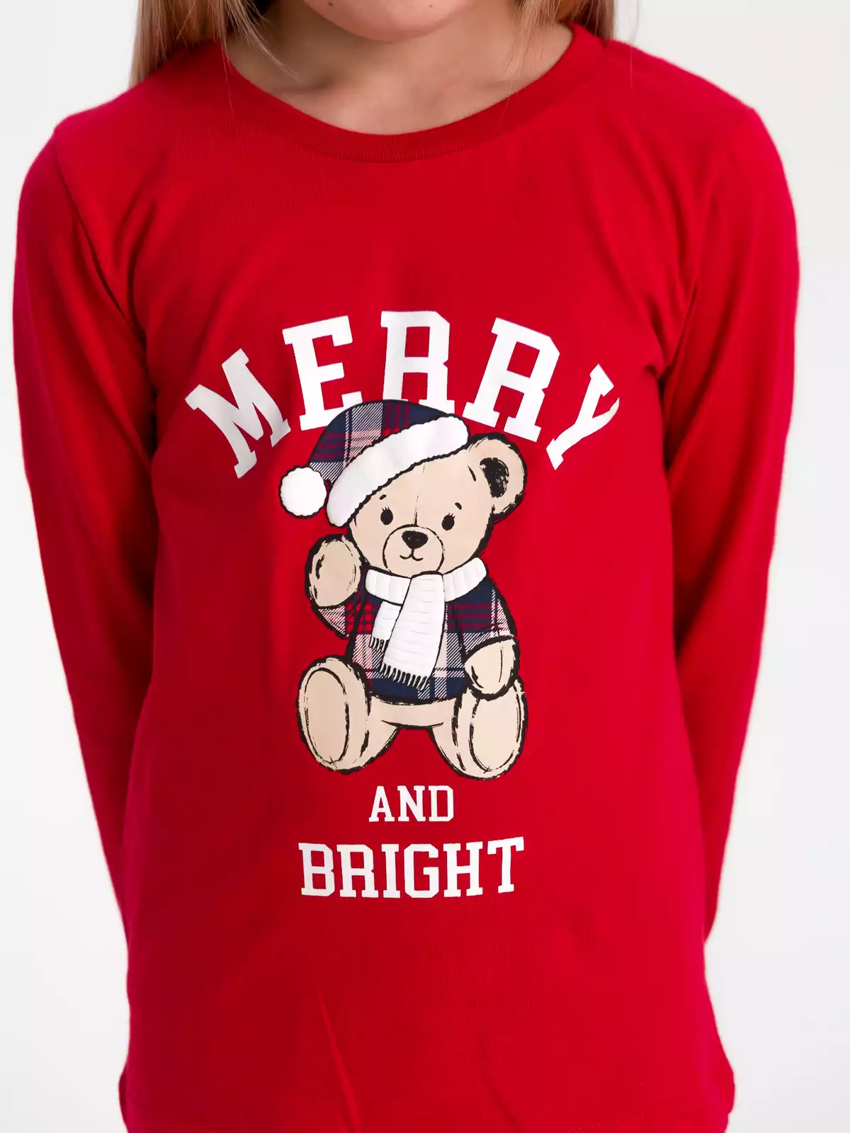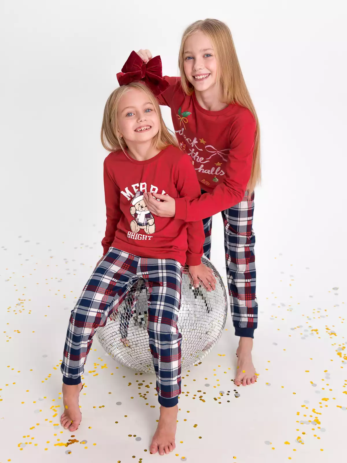 Пижама для девочки состоит из фуфайки с длинным рукавом и штанишек. Штанишки сшиты из материала с набивным рисунком. Фуфайка из однотонного материала и спереди украшена рисунком.