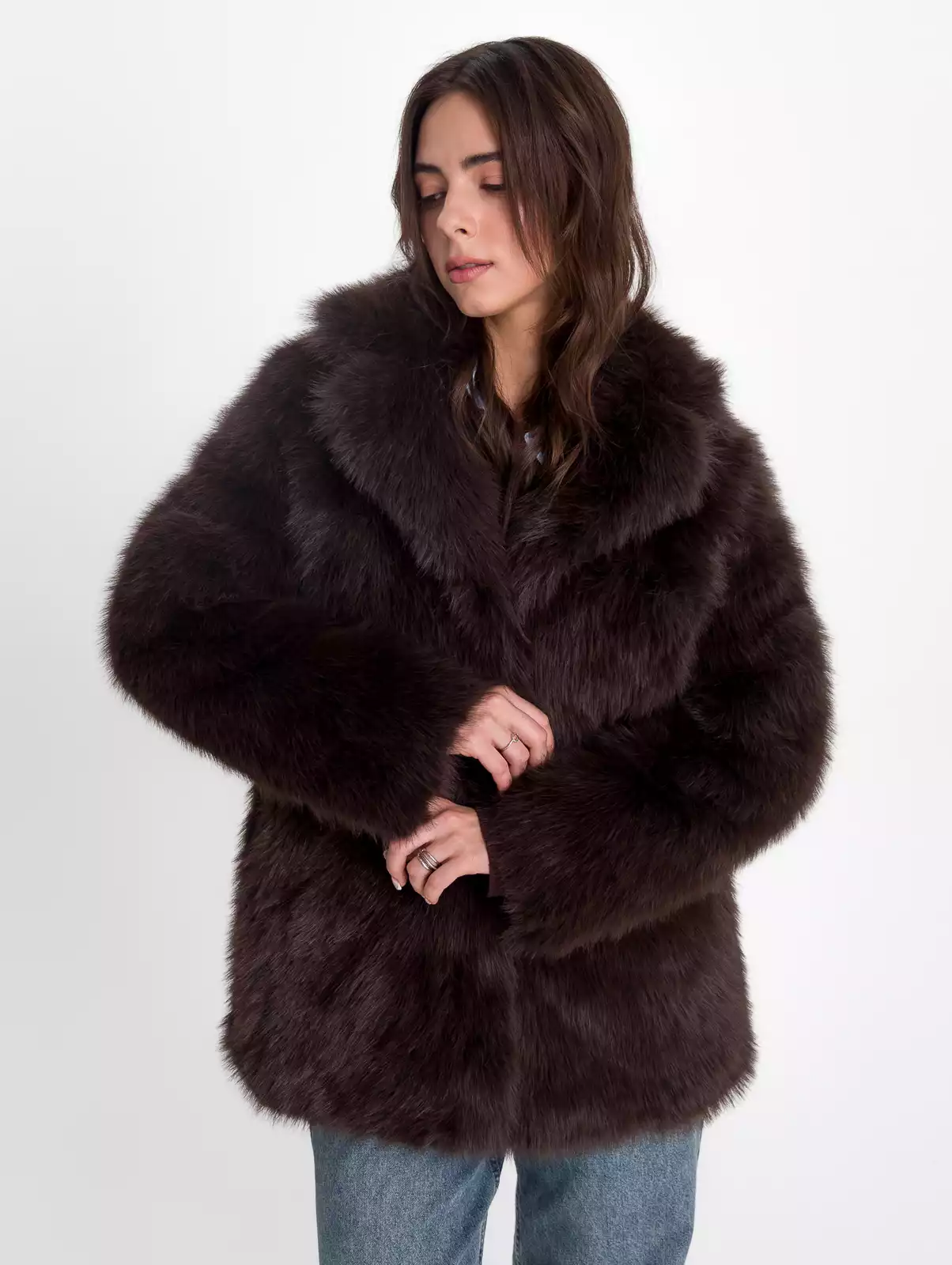 - Удлиненная шуба свободного кроя;